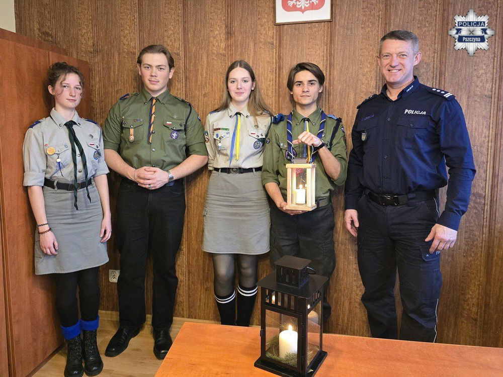 Harcerze II Szczepu Harcerskiego Chmura im. hm. Józefa Pukowca przekazali Betlejemskie Światło Pokoju Komendzie Powiatowej Policji w Pszczynie. Delegację przyjął insp. Arkadiusz Bloch. Spotkanie odbyło się w uroczystej atmosferze i nawiązywało do świątecznych wartości.